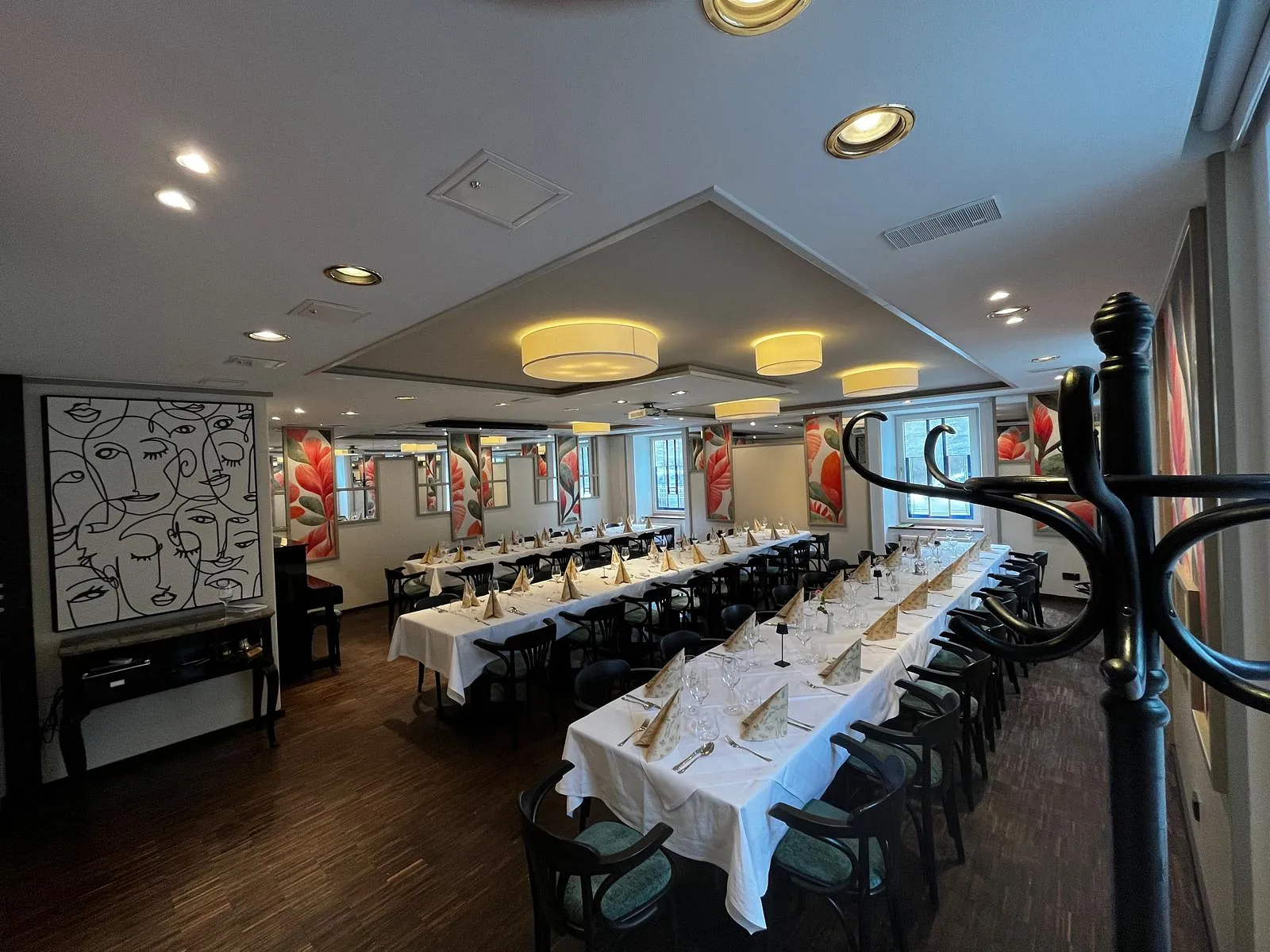 Für die Verpflegung nutzen wir das direkt angrenzende Restaurant, sodass der Seminarraum ungestört bleibt. Wir bieten individuelle kulinarische Lösungen: Kaffee, Kuchen, Gebäck, eine Auswahl alkoholfreier Getränke, Brötchen, Frühstücksbuffet, preiswerte Mittagsmenüs und Business-Lunch-Varianten.