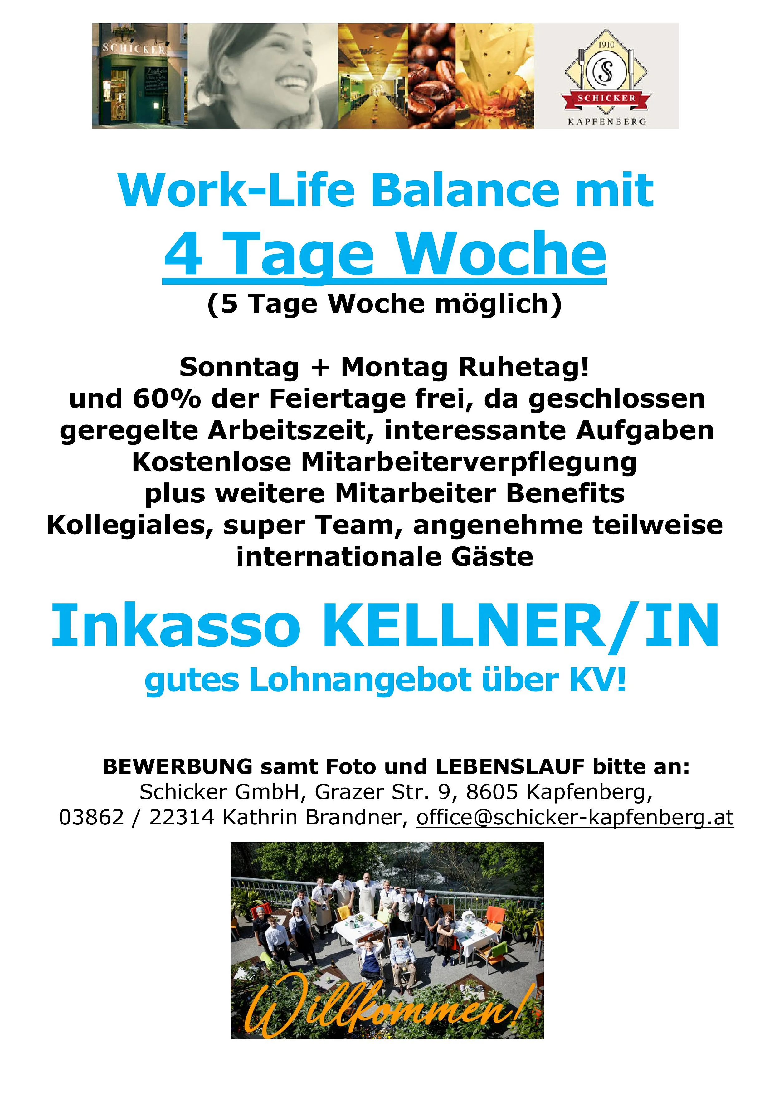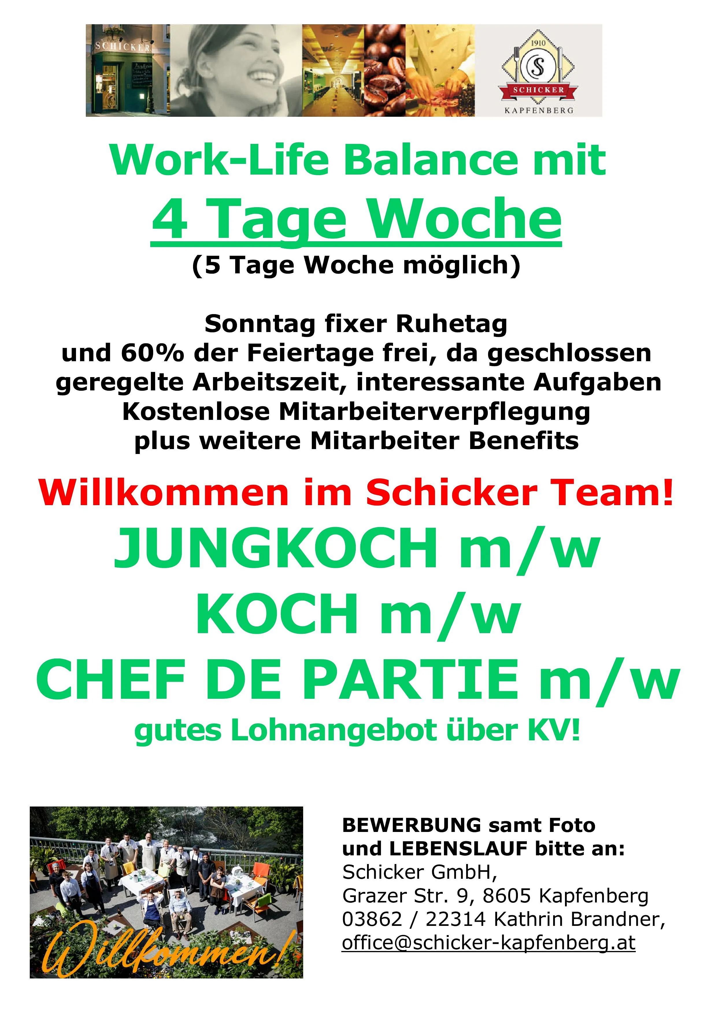 A. Schicker KG, Grazer Straße 9, 8605 Kapfenberg, Frau Kathrin Brandner, office@schicker-kapfenberg.at, Tel. +43 3862 22314