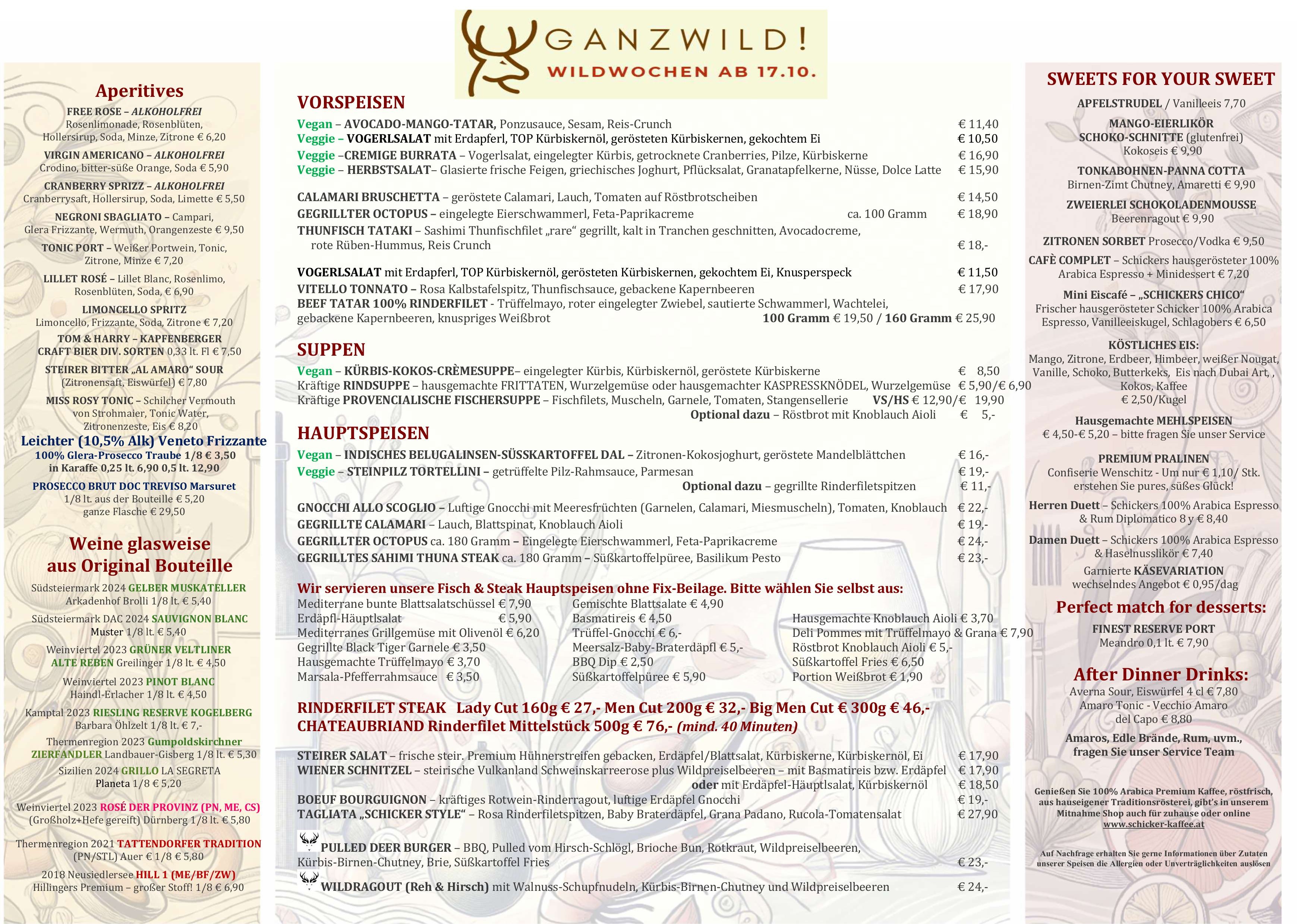 News / Menüs im Schicker Restaurant in Kapfenberg
